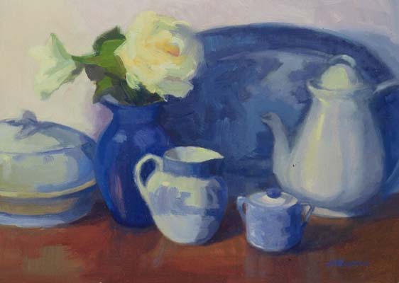 Still Life with Blue Willow - oil - 11"x14"