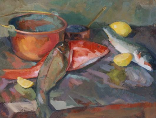 Copper Pot, Fish and Lemons - oil on board - 16"x20"