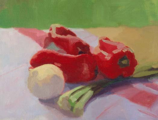 Red Peppers in Cool Light - oil - 11"x14" - private collection